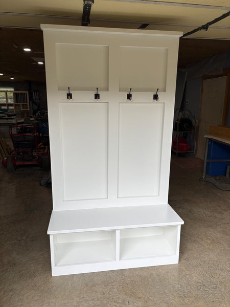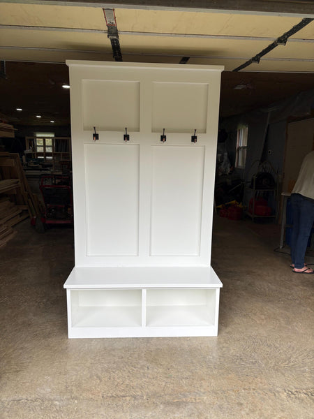 Beautiful 6-foot tall 16” deep and available in 3,4,5 and 6-foot wide hall tree/ mud room locker/entryway bench